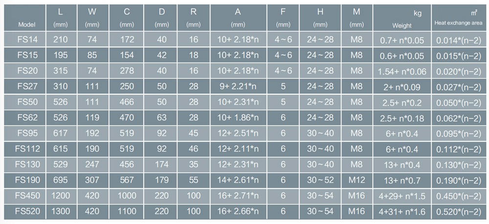 FS conventional products are used for cooling and heating in HVAC; cooling and heating in industrial processes; oil coolers; evaporators, condensers and economizers in the refrigeration industry; and economizers in air-source heat pump water heaters. When applied to phase change heat transfer (evaporator, condenser and economizer) or strict requirements for pressure drop, FEKS conventional products can get higher heat transfer efficieny